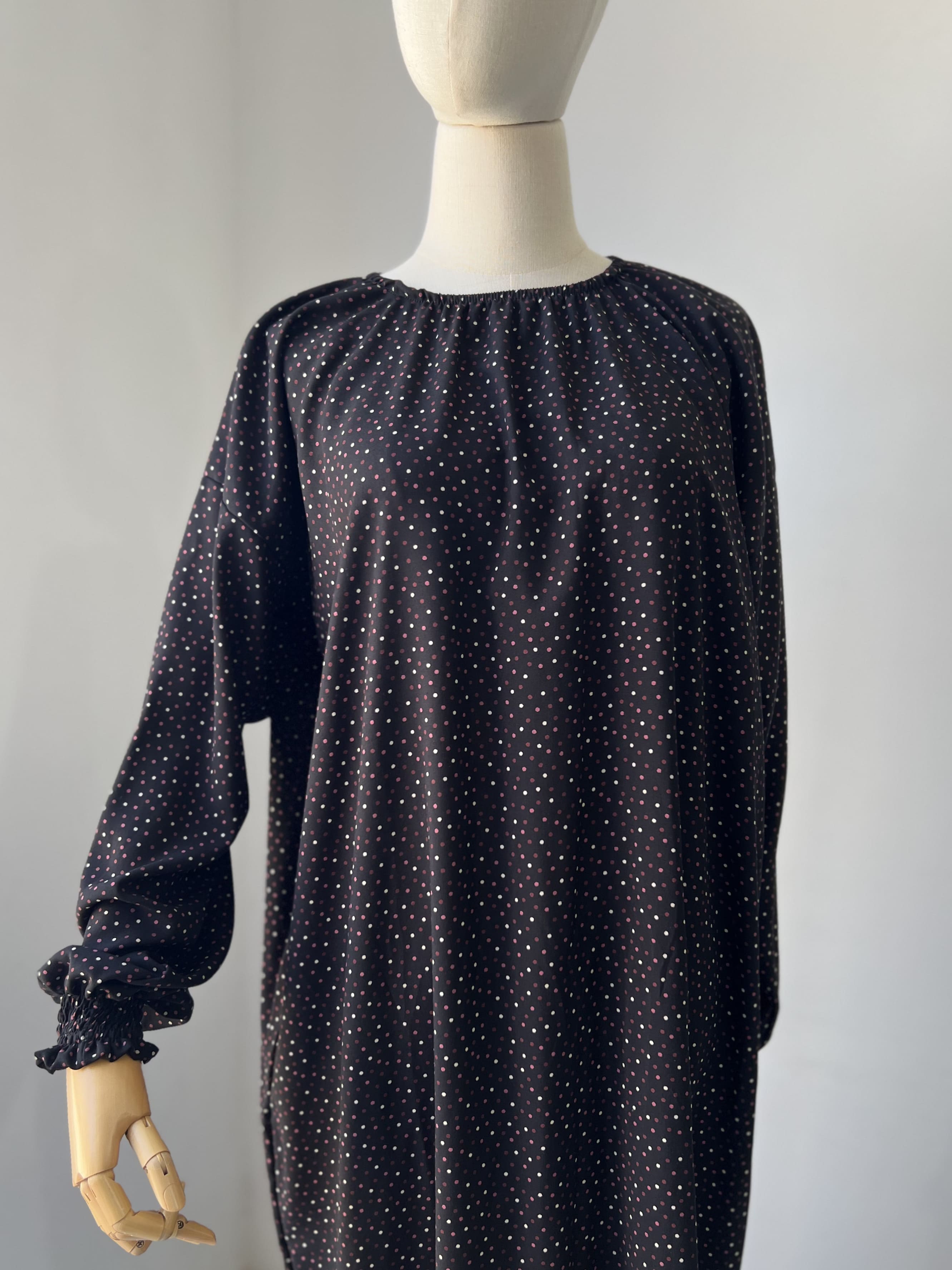 имеет свободный крой по типу намазника, но без головного убора длина 148см ширина 145см Рекомендуем стирать изделие в режиме деликатной стирки при температуре не более 30 С. платье имеет резинку на рукаве и на горловине. это идеальное решения для дома!