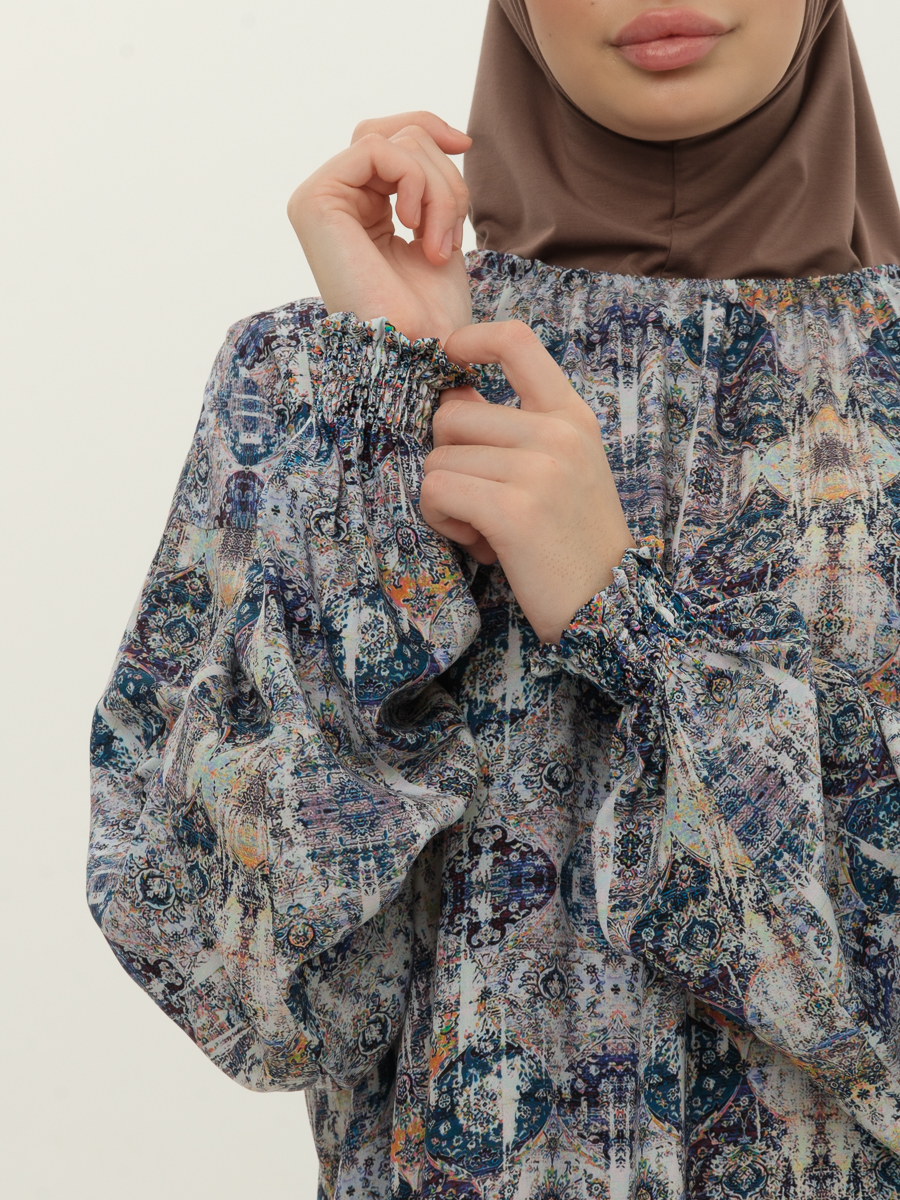 платье идет без головного убора! необходимо укорачивать только после стирки так как материал дает усадку. изготовлено из качественного штапеля, (это тонкий легкий материал) дышащий и приятный в носке.
