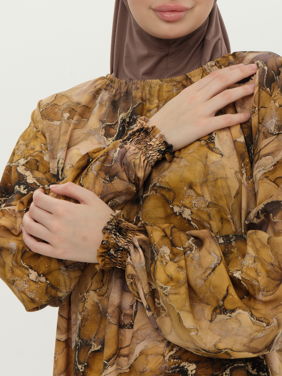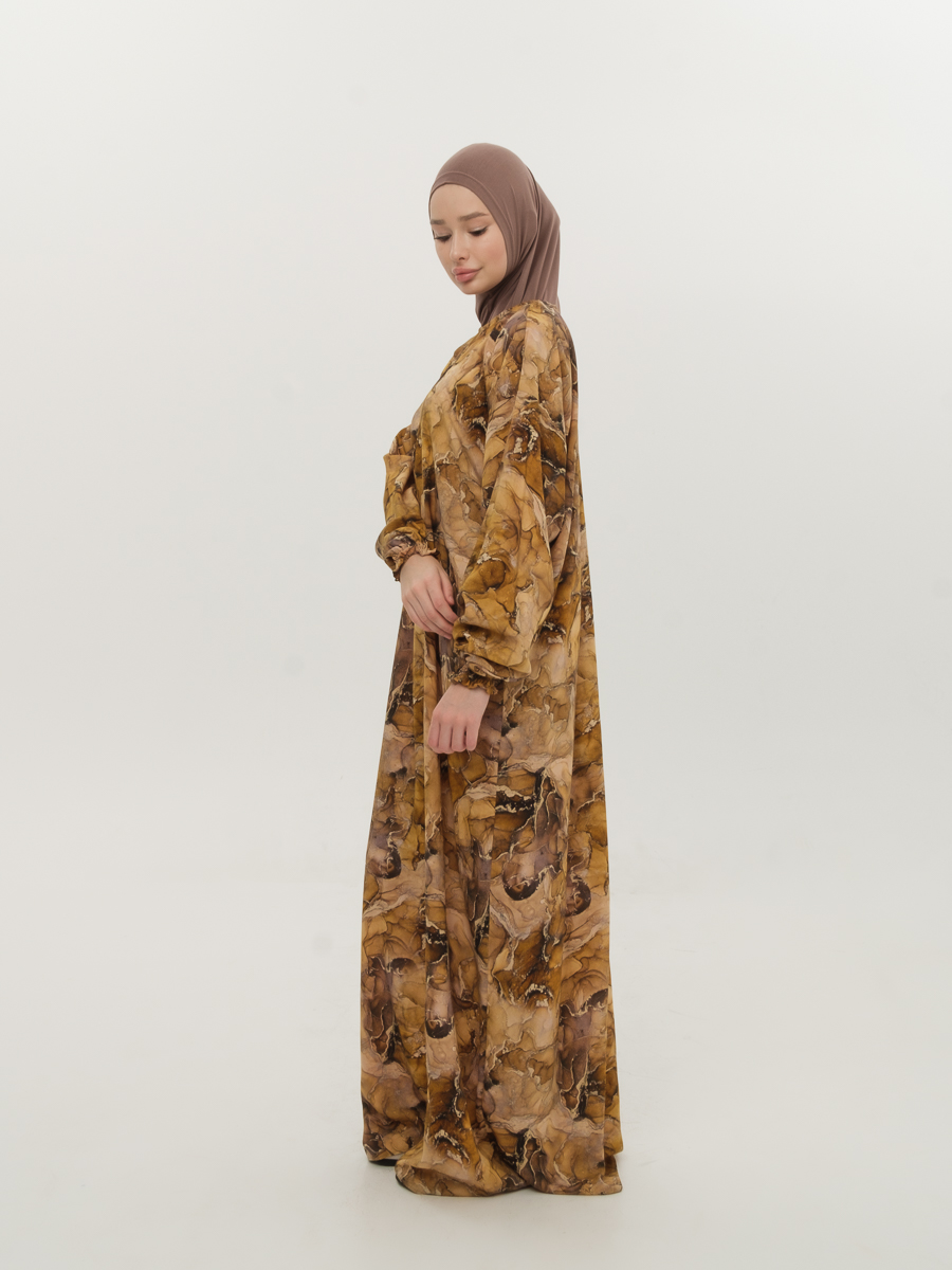имеет свободный крой по типу намазника, но без головного убора длина 148см ширина 145см Рекомендуем стирать изделие в режиме деликатной стирки при температуре не более 30 С. платье имеет резинку на рукаве и на горловине. это идеальное решения для дома!